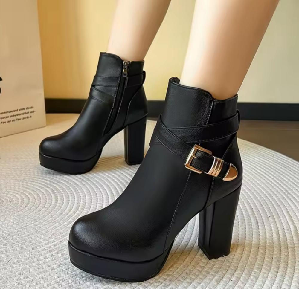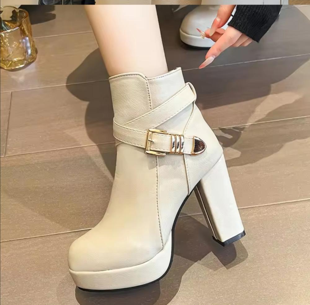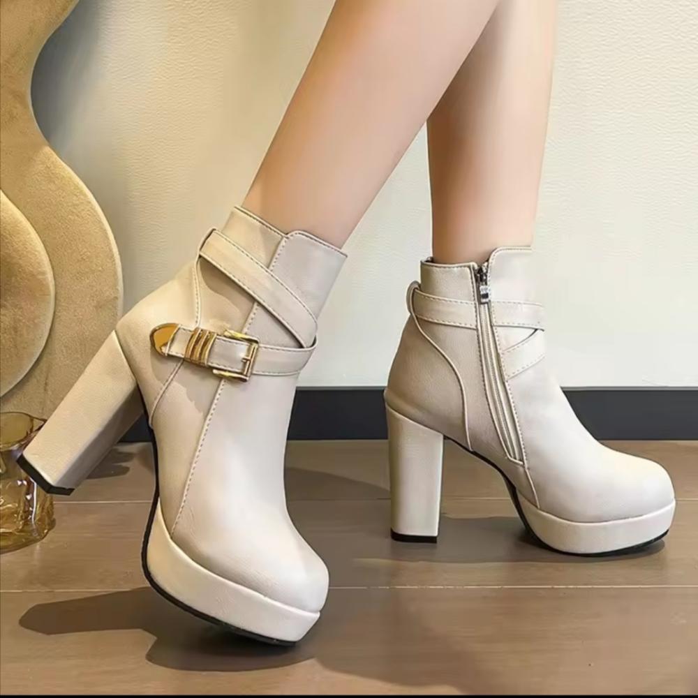 احذيه عالية الكعب في الكاحل للنساء سحاب جانبي اخذية منصة، حجم كبير اسود بيج، مشبك قصير، الخريف، الشتاء أزياء السيدات